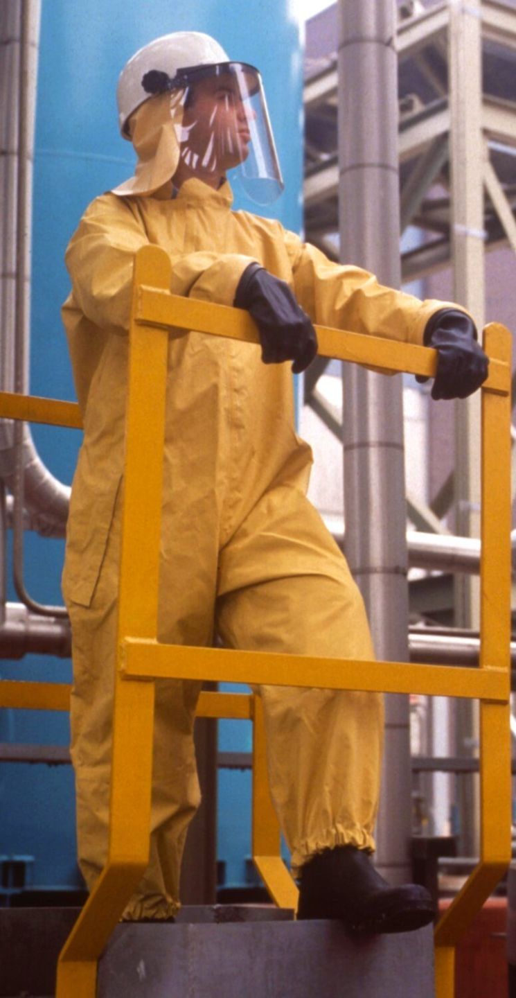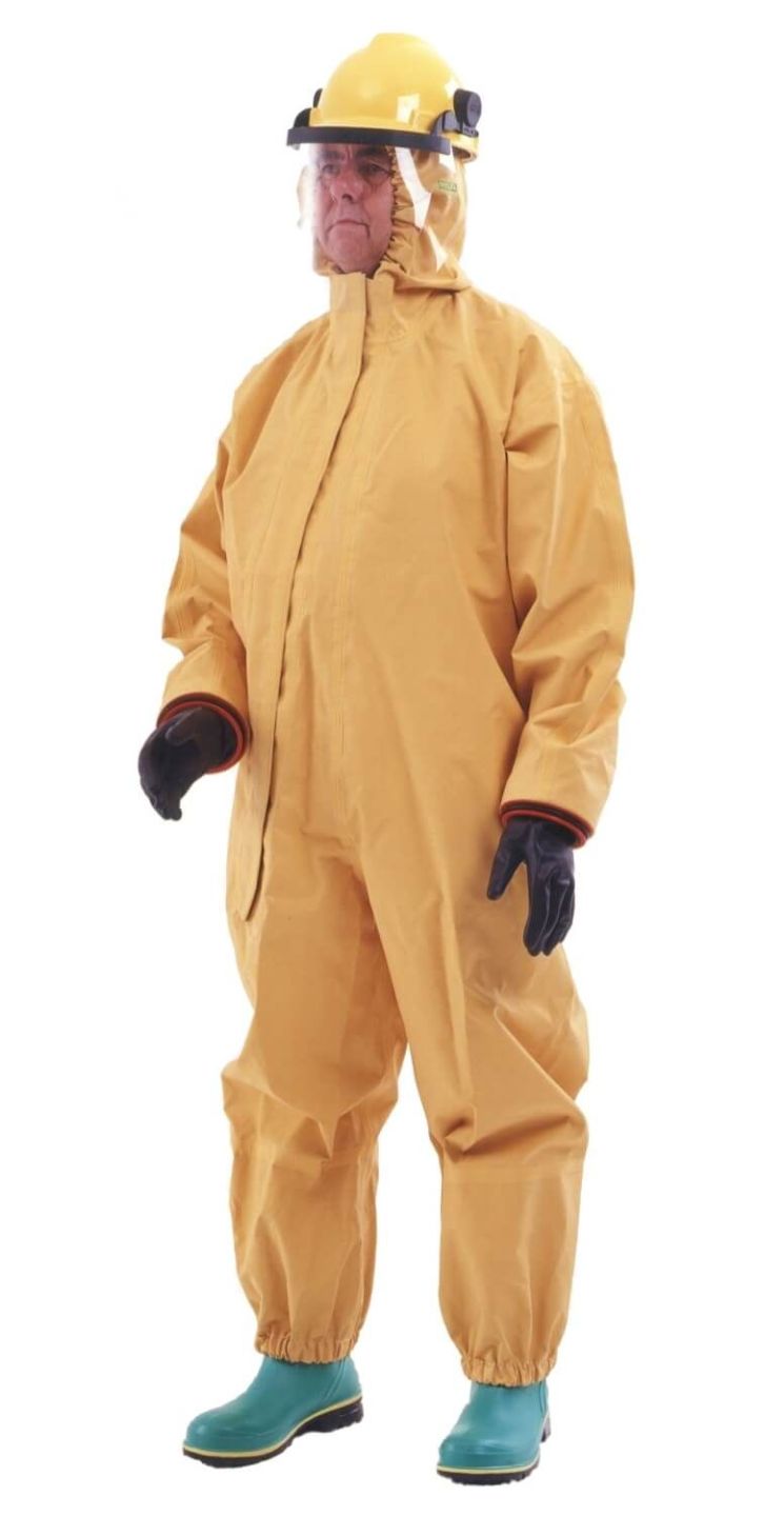 Reusable chemical protection one piece suits are available in a variety of fabrics to provide the best possible protection in numerous industries. The one piece suits feature nylon coarse tooth zips and a choice of Velcro or press stud zip flaps, as well as, central or thigh to collar zips.